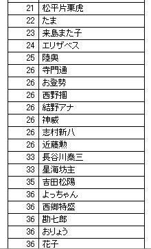 1位が九ちゃんだったのがビックリですw